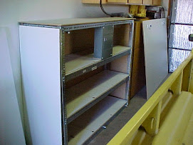 The Batteries will be in a very sturdy closed box against one wall inside the attached garage in my home. I built it using B-Line angle steel to support the weight of the batteries. Two batteries on each shelf, three shelves total. The front cover is removable for easy access to install batteries and do the wiring. There will be a circuit breaker box in the middle to protect the wiring to each battery. I decided to make the breakers accessible through an opening in the front cover for convenience.