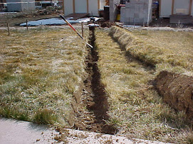 Here you can see some of the irrigation plumbing for the lawn sprinklers. The electrical conduit will lay beside this plastic water pipe.